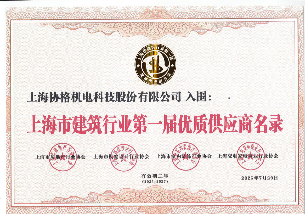 7月29日,上海市建筑行業(yè)第一屆優(yōu)質(zhì)供應(yīng)商名錄發(fā)布會(huì)暨全產(chǎn)業(yè)鏈對(duì)接大會(huì)圓滿(mǎn)召開(kāi)。會(huì)上,《上海市建筑行業(yè)第一屆優(yōu)質(zhì)供應(yīng)商名錄》正式發(fā)布——這是上海建筑領(lǐng)域首個(gè)權(quán)威供應(yīng)商名錄。其中,上海協(xié)格機(jī)電科技股份有限公司憑借突出的技術(shù)實(shí)力與優(yōu)質(zhì)綠色能源解決方案成功入圍。